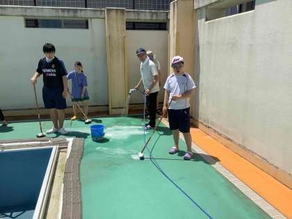自分たちの掃除する場所が終わったら他のグループの手伝をする姿もありました!暑い中でしたが、みんなで協力してプールをきれいにしました。これから少しずつプールに水を入れていきます♪水泳学習が楽しみですね☆