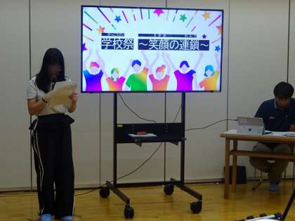 夏休みが終わり学校に子どもたちのたくさんの笑顔と元気な声が戻ってきました。児童生徒集会はリモートで行ない、校長先生からのお話、転入生紹介、各部から夏休みの思い出の発表、生徒会からは「学校祭」についてのお知らせがありました。