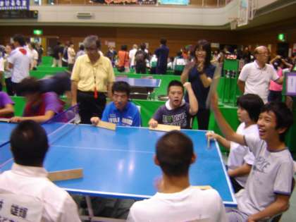 7月29日に京都市立総合支援学校スポーツ交歓会「卓球バレー大会の部」が、京都市障害者スポーツセンターで行われました。本校からは高等部の、20名の生徒が、「北どすえ」、「北へおいでやす」、「北へおこしやす」というユニークな名前をつけた3チームに分かれて参加しました。