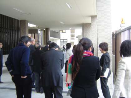 1Fのピロティや2階,3階の教室を見学していただきました。3階,4階には吊り遊具が使えるような設備があります。