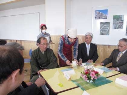校舎内の見学のあとは,本校高等部生徒がスマイルカフェとして参加者に飲み物の接待をさせていただきました。