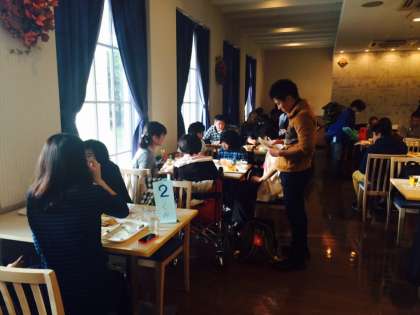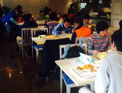 高等部修学旅行は2日目を迎え,朝食中です。