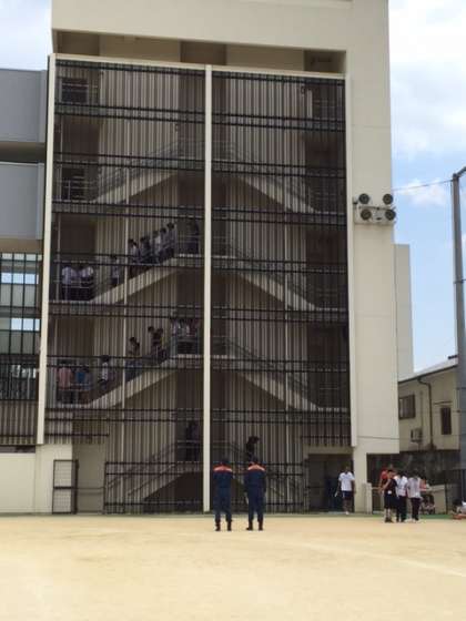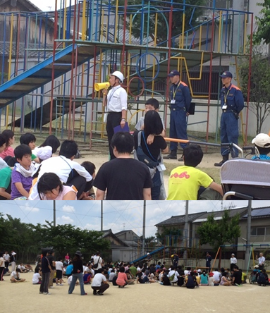 少し暑い日でしたが,子どもたちはとても落ち着いて行動でき,上京消防署から来られた職員様からも講評でほめていただきました。