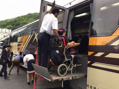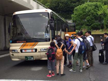 新神戸でバスに乗り換え、一路淡路島へ。車内では音楽がかかり歌声や手拍子が聞こえます。淡路島牧場で牛に会えるのも楽しみです。