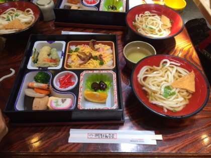 お昼ごはん。やっぱりおいしいうどんがついています。