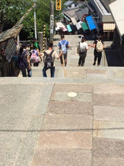 お昼ごはんのあとは、金毘羅宮と門前町へ。階段、石畳の情緒ある街並みを歩きました。運動のあとはアイス!おいしい〜