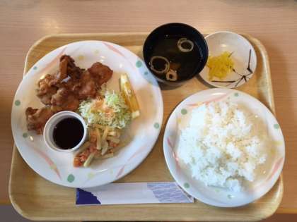 くつろぎ館での昼食です。修学旅行最後の食事は…から揚げ定食!おいしそうですね!