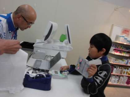 探究館の先生から仕事の説明を聞いたあと,お漬物の西利の法被を着て仕事開始。「おすすめはしば漬けです。」「ありがとうございました。」とお客さんと会話をしたり,レジで商品の値段を打ち込んだり,一人一人が事前に学習してきたことを発揮して仕事に取り組みました。仕事が終わると銀行でお給料をもらい,コンビニで電子マネーを使って買い物もしました。仕事をする楽しさ,おもしろさを感じ,達成感いっぱいの学習になりました。