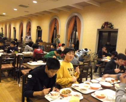 ゆうべの夕食。カレーバイキングです。一日しっかり活動して食欲もりもり。