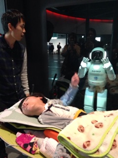 アシモにご挨拶「よっ!」