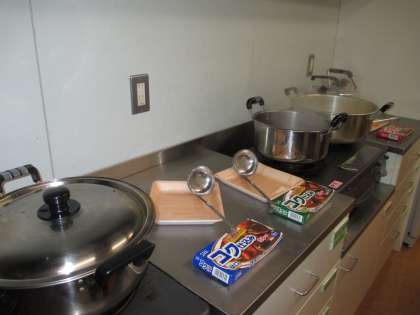 カレー作り。分担して手際よく終了。あとは煮込むだけ!