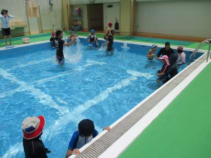 高学年の子ども達は,待ってましたとばかり,勢いよくプールに入りました。忍者の真似して水に潜ったり,プールに投げ入れたカラーボールを取って集めたり,いろいろな活動に挑戦していました。