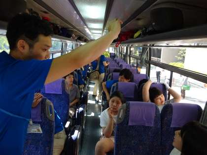 バスの中はこんな感じです。気分が高揚しています。