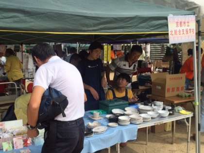 只今,西陣公園にて,4名の生徒が販売実習を行っています。よく晴れた空の下,汗をかきながら,本校のワーク製品を販売しています。