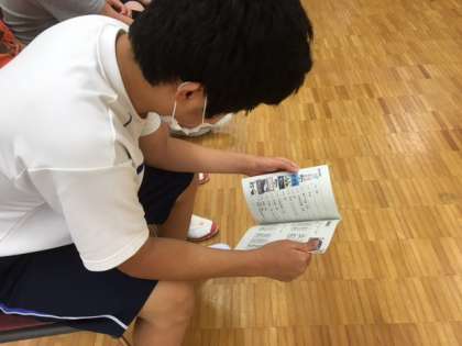 しおりを見ながら明日からの修学旅行の行程を確認しています。ドキドキ・ワクワク…楽しみですね!