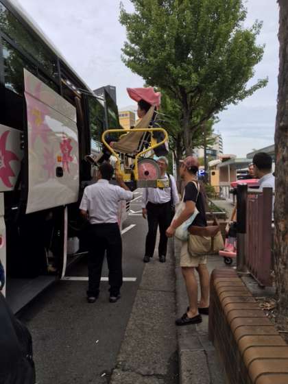 リフト付き観光バスで名古屋市科学館へ向かいます。