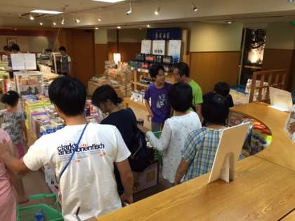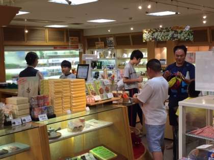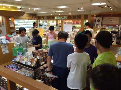 先ほど,お土産のお買い物を済ませた生徒たちに続いて,下見の生徒たちも来ました。「明日、ナガシマスパーランドでも見てから決める!」と、言っている子もいます。