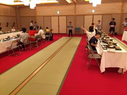 いただきますの前に歌を歌って誕生日の生徒のお祝いをしました。