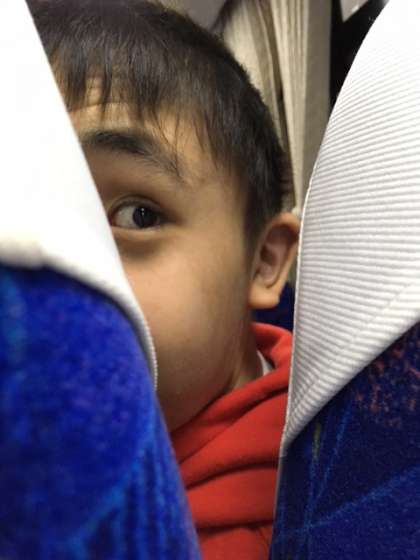 元気にガイドさんと話す人もいれば,ぐっすり寝ている人もいます…あ,覗いてる人もいますね笑