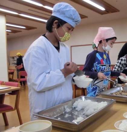 給食時間…生活学習室でみんなで集まって食べました。