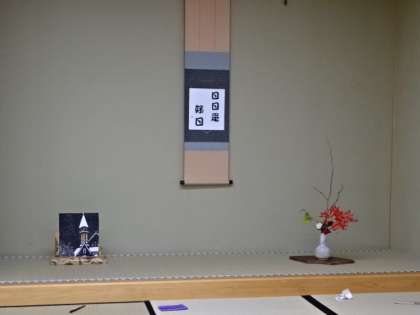 茶室に入って,畳の縁の手前を13目空けて座ります…これは,お茶菓子を載せる懐紙を置く場所を空けておくためだそうです。生徒たちは毎時間,『お茶』に関する様々なことを教えていただいて,少しずつ身に付けていっています。