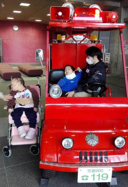 強風体験では,驚きから笑顔になる人,驚きから涙がでた人…それぞれが風を感じました。地震体験では,揺れを感じ,クッションで頭を隠しながら身を守ることができました。