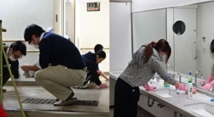 オムロンの社員さんたちが社会貢献作業として,本校で清掃作業を行っていただきました。