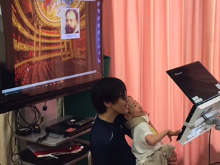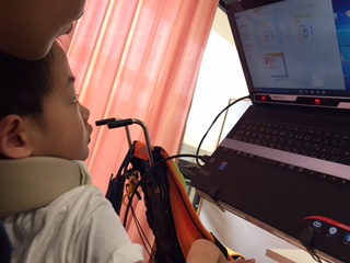ケイエフ興業株式会社様から御寄付いただいた「視線入力装置」を使って,学習しています。