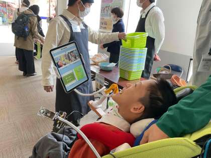 販売の様子は本校にも動画配信しており、ワーク製品が売れていく様子をみんなで観ました。
