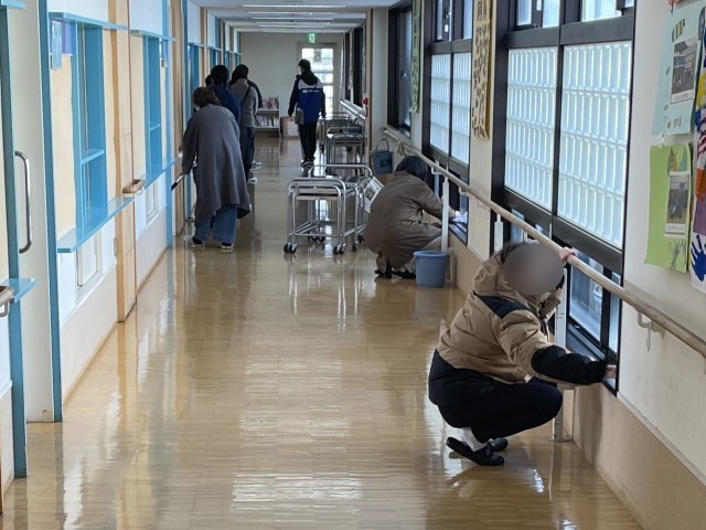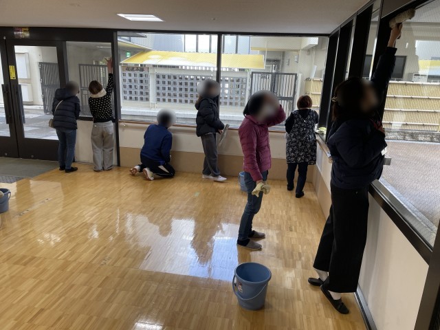 今年度の最終PTA活動として「校内清掃活動」が2月10日(火)に実施されました。今回は、高等部のワークスタディで清掃活動をしている生徒と一緒に、乾式モップでの床清掃、スクイージーを使った窓清掃などを行なっていただきました。参加されたPTAの皆さんは、生徒の日ごろの活動のやりがいを感じつつ、和気あいあいと保護者同士のコミュニケーションが弾む楽しい時間を過ごされていました。