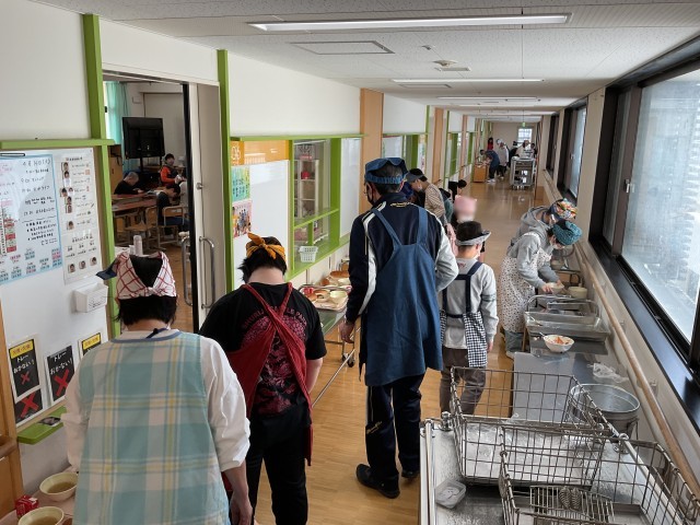 先生や友だちと協力しながら準備をしています!