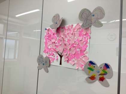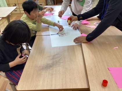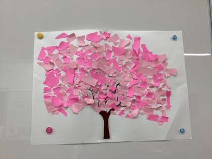 本日の学校の様子1 公開日 2024/04/16 更新日 2024/04/16 学校の様子 今週から本格的に通常授業が始まっています。 小学部の5、6年生では、お話あそびの後、「桜を咲かせよう」をテーマにして、紙をちぎって貼り付けたり、チョウチョを飾ったりして、華やかな桜の木を作りました。