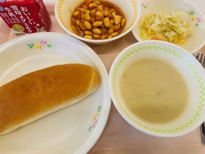 今日の汁物は、じゃがいものうまみがいっぱいのポタージュです。