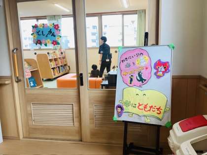 メディアライブラリーの生徒たちが作成したポスターや看板で、図書館を利用する児童生徒を迎えてくれています。