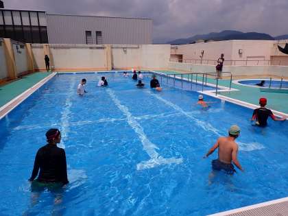 時折、夏の日差しがさしこむ中、高等部2年生が水泳学習を行いました。