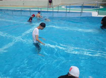 アクアビクスで身体を動かしたり、ダイブボールを拾って集めたり、コースを設定してビート板を使って泳いだりと、様々な活動を意欲的にすることができました。
