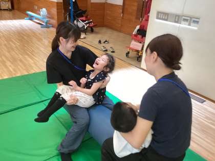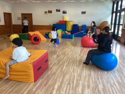 大きなホールに入ると、それぞれお気に入りの遊具を見つけ、時間いっぱい身体を動かしました。