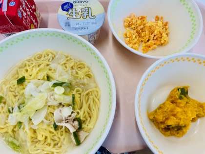 ります。味つけはシンプルに塩味です。今日の給食のタンメンは、