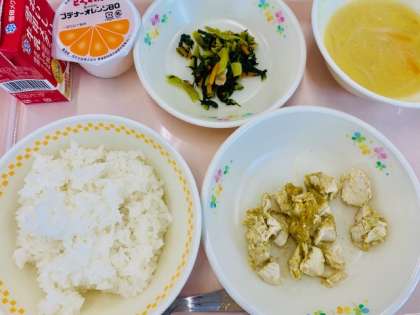 今日の「スパイスチキン」には疲労回復効果のあるニンニクや
