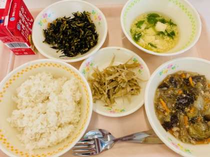 今日は、なすには油をからませて焼き、だしが効いたそぼろあん