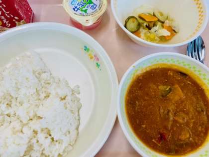 本日の給食 公開日 2024/08/26 更新日 2024/08/26 学校の様子 <8月26日(月)の献立> ・麦ごはん ・夏野菜のカレー ・野菜のマリネ ・牛乳プリン ・牛乳 ◇夏の野菜と水分について◇ 汗で大量の水分が失われる夏は、こまめな水分補給がとても 大切です。 夏の太陽の光を浴びて育った野菜は、水分やミネラルが豊富です。 また、体にこもった熱を冷ましてくれる働きがあります。 夏野菜を食べて、食事からも水分補給をしましょう。