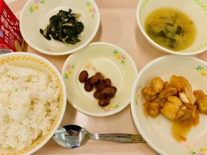 本日の給食 公開日 2024/09/09 更新日 2024/09/09 学校の様子 <9月9日(月)の献立> ・麦ごはん ・とり肉の南蛮漬け ・ほうれん草の煮びたし ・金時豆のあま煮 ・わかめのみそ汁 ・牛乳 ◇食材紹介◇ 「わかめ」 わかめは、海の底で育つ海藻です。 おなかの中をきれいにする「食物せんい」を多く含んでいます。 海の中では茶色ですが、ゆでるとあざやかな緑色になります。 今日はみそ汁に入っています。