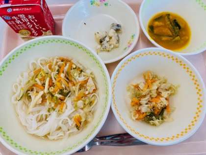 給食の「チキンフォー」は、鶏のスープを使い、しょうがの風味
