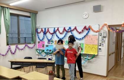1、2年生が3年生のために作った輪飾りやメッセージが一面に貼られた会議室で解散式が行われ、生徒からは「みんなと仲を深めることができました。」「来週からの学校生活もがんばります。」と「解散宣言」がありました。