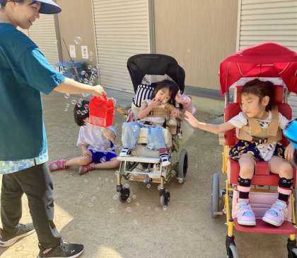 小学部 ライフスタディの様子 公開日 2024/10/01 更新日 2024/10/01 小学部 小学部 低学年の学習の様子です。 気持ちのいい秋晴れのもと、グラウンドでシャボン玉に手を伸ばしたり、飛んでいくシャボン玉を追いかけたりと、元気に活動していました。