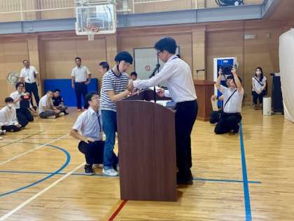 前期終業式 公開日 2024/10/04 更新日 2024/10/04 学校の様子 本日、前期終業式を行いました。校長先生からは、前期の振り返りと後期に向けたお話、そして「これからも、みんなで一緒に中央分校をつくっていきましょう。」とお話がありました。 その後は、姉妹都市展、硬筆書写作品展などの表彰があり、子どもたちは一人一人いい表情で校長先生から賞状を受け取っていました。 教室に戻ってからは、教室を丁寧に掃除したり、前期の振り返りをしたりし、そして担任の先生から通知票を受け取りました。