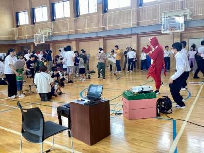 式の後は、保健体育委員会からは風邪をひかない取組の紹介、文化委員会からはダンスや絵本の読み聞かせ、生徒会からは11月に行われる文化的行事「いちょうフェス」について紹介がありました。