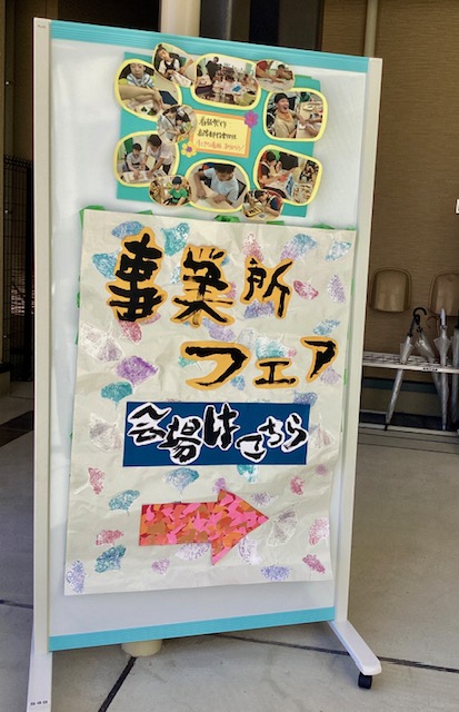 休日参観、ありがとうございました!その3 公開日 2024/10/12 更新日 2024/10/12 学校の様子 事業所フェアの様子です。 会場案内の看板は、ワークスタディ「役割&コミュニティ」の生徒たちが作ってくれました。