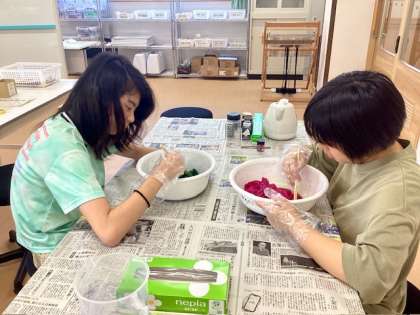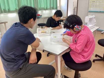 はじめに活動内容の確認をした後、ビー玉しぼりや刺しゅう、ミシンを使った活動など、時間いっぱいそれぞれの活動に集中して取り組んでいました。