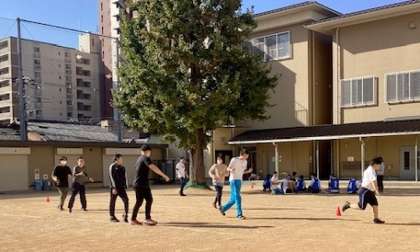 秋晴れの気持ちのいい空のもと、今日も元気に体力づくりに励んでいます。